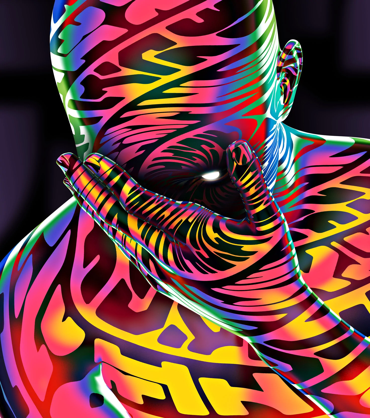 Attraverso un racconto interattivo e non lineare, la mostra esplora la fruizione dei contenuti digitali. Suono, immagine e luce sono i componenti primari di suggestive costruzioni, manipolazioni e iterazioni. Vengono brutalmente decontestualizzati e sapientemente riassemblati dagli artisti per creare inediti immaginari, assurdi o possibili, seducenti o disturbanti, buffi o provocatori. Metaverso e intelligenza artificiale dialogano con stampe fluo e televisori a tubo catodico. Nuove tecnologie e linguaggi visivi si mescolano con gli affreschi e le stratificazioni dello splendido Palazzo Caracciolo di Avellino, trasformandolo in un luogo di vibrante sperimentazione sinestetica.